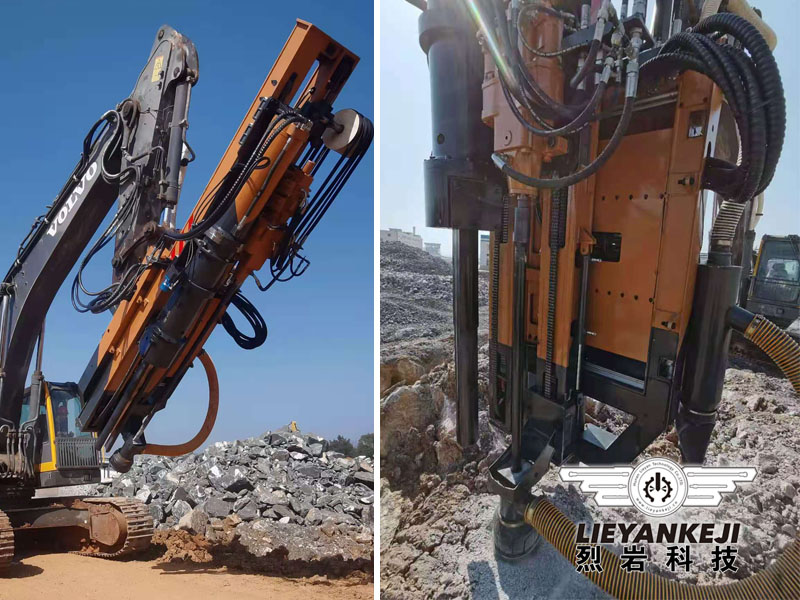 烈岩科技有限公司针对南方工况复杂这一实际情况,自主研发设计岩石钻孔分裂机及挖改凿岩钻机,安装在挖掘机上,多角度钻孔,劈裂、除尘系统于体,实现一机多用,再复杂的工况也不惧怕!